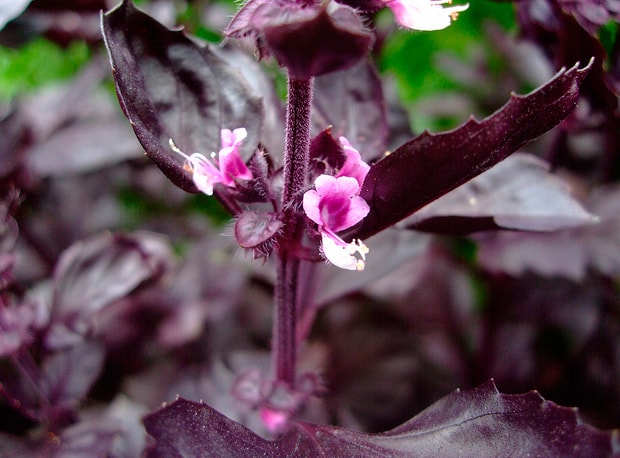 Базилик Osmin Purple - высокодекоративный сорт, может использоваться в качестве декоративного растения. Отлично кустится. Листья крупные, блестящие, темно-фиолетовые, зубчатые. Очень ароматный сорт. Применяется в кулинарии. Страна-поставщик - Нидерланды.