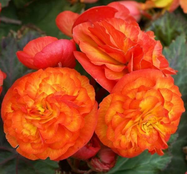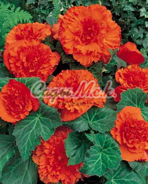 Бегония сорта Kupferorange – многолетнее растение с красивыми крупными и пышными цветами розово-красного или ало-оранжевого цвета. Ярко-зеленые листья – естественный фон, на котором цветы выглядят празднично и торжественно.