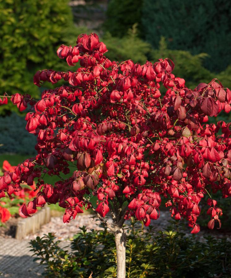 Растёт медленно. Молодые ветви зелёные, округло-четырёхгранные, на углах этого «четырёхгранника» - продольные коричневатые пробковые «крылья» шириной 0,5 см. Плоды-коробочки декоративные тёмно-красные на длинных цветоножках. Листья осенью яркие вишнёво-красные. Хорошо переносит стрижку. Используется в одиночных посадках, живых изгородях. Засухоустойчив, очень вынослив. Место солнечное, зона 4 (до -29°С).