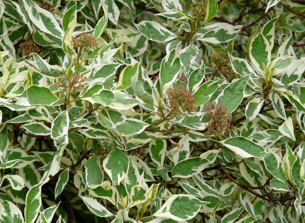 Саженцы дерен Elegantissima универсальный кустарник для каждого сада, в любой сезон. Этот сорт выгодно отличает от сородичей, окрас листьев. А именно пятнистость, контрастными цветами. Кустарник вырастает крупномерным, до 3 м высоты. Ветки растут вверх, кора их красного цвета или иной оттенок кораллового.Листва широкая, овальной формы с острым наконечником. В осенний период, листва меняет окрас на фиолетовый или красноватый.Цветет небольшими, плотными шарообразными соцветиями. В мае или июне. В сентябре куст начинает плодоносить, бледно-голубыми ягодами.Неприхотлив, но любит солнце или небольшую тень.