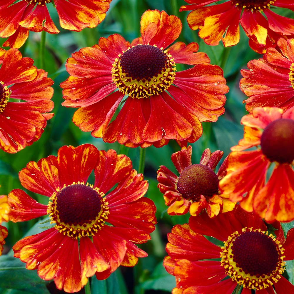 Гелениум Челси (Chelsey) относится к многолетникам. Для семян гелениума «Челси» нужно выбирать участки с хорошей освещенностью. Высота взрослого растения достигает 120 см. Стебли укрыты зелеными узкими листочками. С июля по август распускаются достаточно крупные цветки. Лепестки имеют двухцветный окрас. Ближе к темной серединке они оранжево-коричневые, а по краям –оранжевые. В уходе рассада гелениума «Челси» неприхотлив: полив нужен умеренный, удобрения не требуются, к морозам устойчив.
