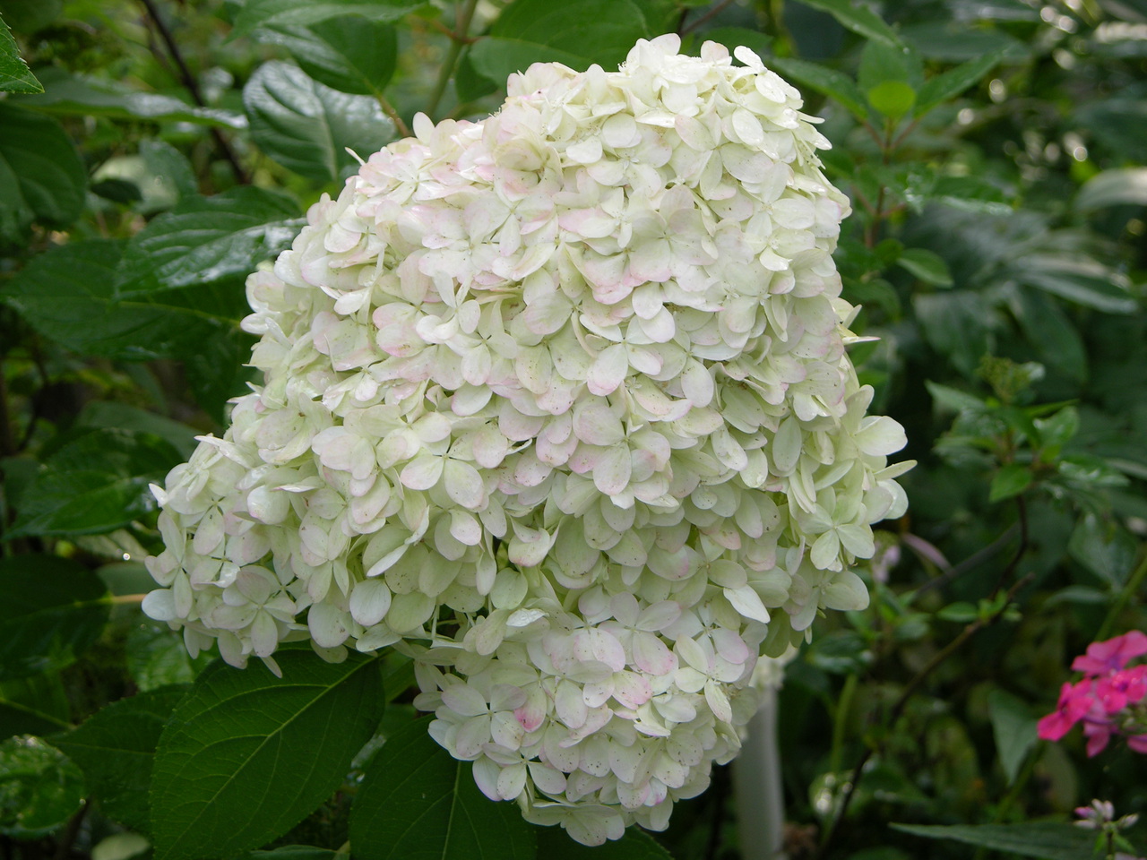Гортензия метельчатая Harry’s Souvenir – компактный сорт листопадного кустарника, вырастающего до 1 метра в высоту. Сорт был выведен во Франции. Обладает большими эллиптическими матово-зелеными листьями. Побеги прямостоячие и многочисленные. Соцветия конусообразные, собраны из цветов белого оттенка, которые после становятся розовыми. Период цветения – с июля по октябрь. Высаживается в плодородные слабокислые почвы. Нуждается в обильном поливе, дренировании. Лучше цветет в солнечном месте. Сорт зимостойкий, но в первые 3 года роста нуждается в укрытии на зиму.