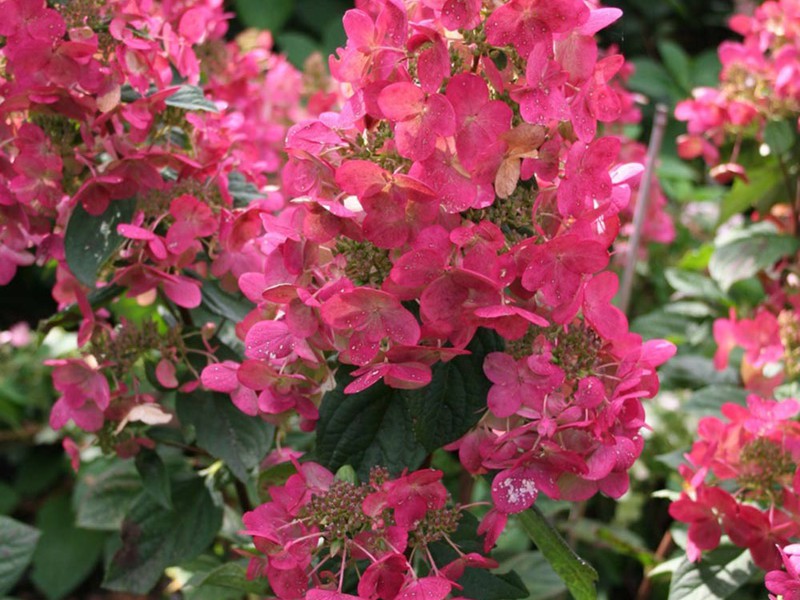 Гортензия метельчатая Magical Fire – многолетний красивоцветущий кустарник до 1,2 метра высотой. Соцветия конической формы до 20 см в длину с кремово-белыми цветками, которые постепенно становятся красными и пурпурно-розовыми. Стебли крепкие, не сгибаются. Сорт морозостойкий. Период цветения – с июля по сентябрь. Цветки будут ярче по оттенку, если гортензию высадить в кислую почву. Растение влаго- и светолюбиво. Ежегодно нуждается в весенней обрезке старых, засохших побегов.