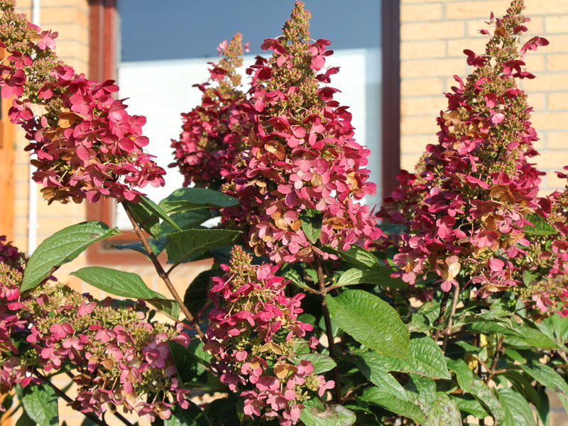 Гортензия метельчатая Wim's Red – листопадный кустарник высотой и диаметром кроны до 2 метров, ветвистый, с сильными побегами. Соцветия имеют форму конуса и в длину вырастают до 30 см. Цветки сначала кремово-белые, затем становятся темно-розовыми, а к осени – винно-красными. Сорту характерен приятный аромат. Период цветения продолжительный – с июня по сентябрь. Высаживается гортензия в легкую почву, в которой не застаивается вода и в солнечные места. У сорта высокая зимостойкость. Используется в смешанных с многолетниками посадках.