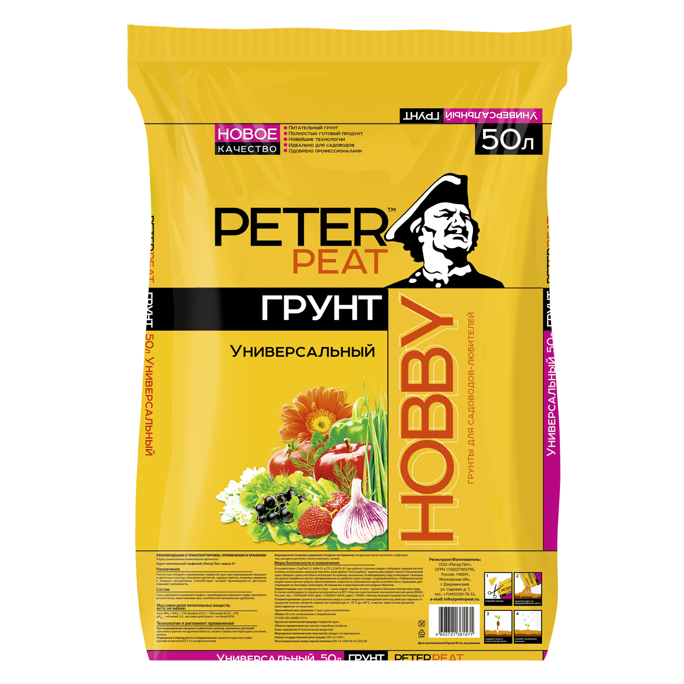 Грунт Универсальный (линия Хобби) 50 л - питательный торфяной грунт для выращивания овощных и цветочных культур, комнатных растений, садовых цветов, плодовых деревьев и ягодных кустарников. Способствует лучшей приживаемости растений, повышает урожайность.
