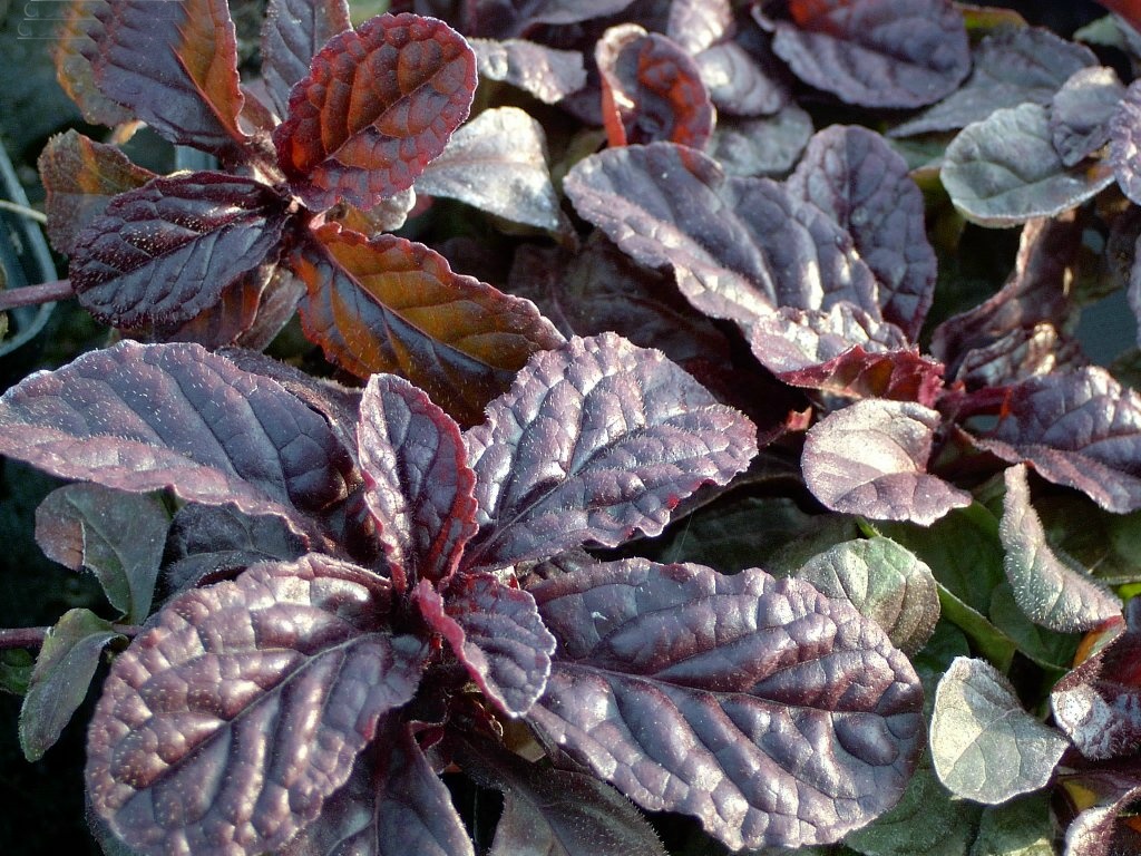 Живучка ползучая Atropurpurea — компактное растение с выразительными красно-коричневыми листьями, имеющими фиолетовый отлив. Сортовые особенности: не имеет ползучих побегов, быстро разрастается, но всегда сохраняет компактность, имеет наиболее яркий цвет на солнце. Высота растения не более 15 см. Листья выпуклые с ярко-выраженными прожилками. Зацветает в мае, образуя колосовидные соцветия с мелкими синими цветками, собранными в мутовки.Несмотря на то что Atropurpurea — солнцелюбивый сорт, растение неплохо уживается на участках со скользящей тенью и даже в полной тени, лишь немного теряя яркость окраски. К влаге и качеству почвы нетребовательна. Разрастаясь, образует густой подушкообразный ковер. Идеальна для «латания» проплешин в цветниках и высадки в альпинариях.