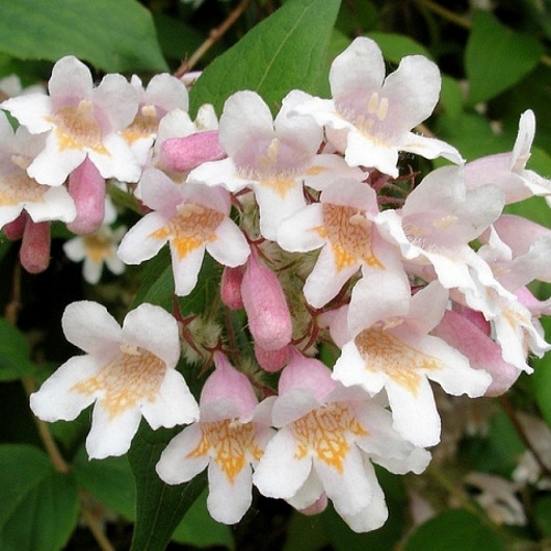 Саженцы кольквиция представляют собой красивейший декоративный кустарник. Он украсит любой сад крупными и ароматными соцветиями, которые окрашиваются в беловато-розовые тона. Такие цветы придают любой садовой композиции очарование и воздушность. В высоту она может достигать двух метров, хорошо поддается обрезке, благодаря чему ей можно придать любую форму. Во время цветения верхушка куста полностью покрывается бутонами нежного цвета, осенью листва растения становится яркой оранжевой. Этот сорт любит солнечные места, защищенные от сквозняка и ветра, отличается повышенной зимостойкостью.
