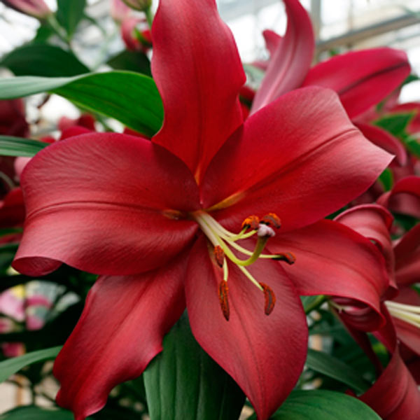Луковицы лилии ОТ-гибрид Формия (Lilium OT-hybrid Formia) хороши для любителей классики и лаконичного шика. Крупные, до 25 см в диаметре, глянцевые цветки темно-красного насыщенного винного тона с очень мелкими, практически незаметными тычинками приведут в восторг любого ландшафтного дизайнера не только размерами и цветом, но и спокойным гармоничным контрастом с темной сочной зеленью густых листьев. На каждом цветоносе распускается до 10 бутонов. Массовое цветение начинается ближе к августу. Для посадок в открытом грунте Лилия ОТ-гибрид Формия предпочитает дренированные плодородные почвы с защитой от ветра.