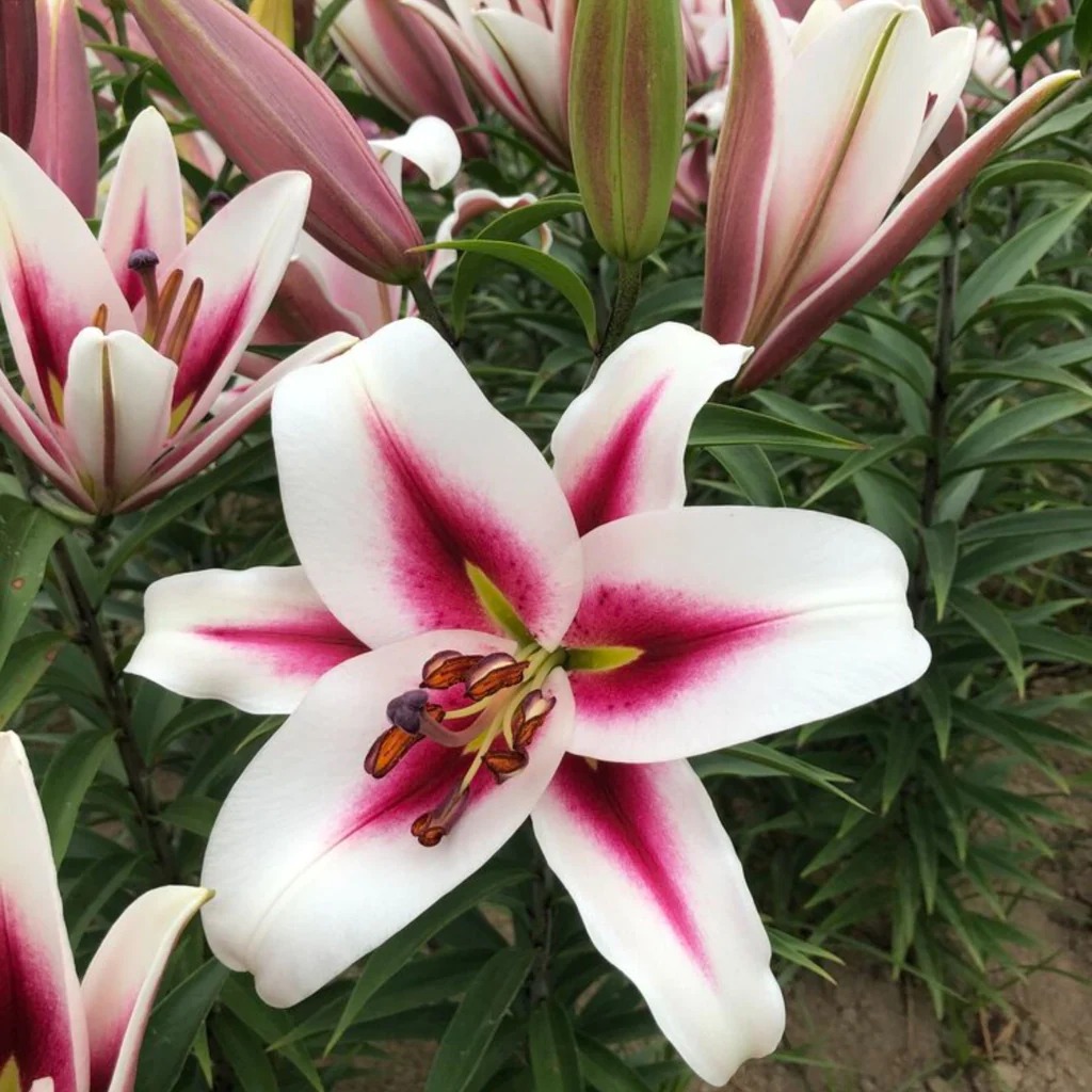 Луковицы лилии ОТ-гибрид Гаучо (Lilium OT-hybrid Gaucho) предпочтут рыхлые, песчано-глинистые почвы для посадки с обязательным дренажем и достаточным количеством солнца. Многолетник вырастает до 120 см в высоту, начинает цвести в июле месяце. Лепестки белые, с широкими мазками темно-малинового цвета в центре и легким крапом того же тона при переходе на белый. Пыльники мелкие, на длинной тонкой ножке, темно-бордового цвета. Диаметр цветка до 22 см, аромат слабый, легкий, без тяжелых пряных нот и удушающей густоты. Лилия ОТ-гибрид Гаучо очень хорошо подходят для срезки, после цветения долго сохраняют декоративность зелени.