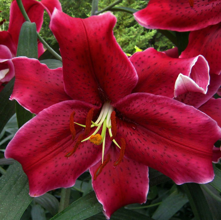 Лилия Rio Negro является одним из самых красивых черно-красных сортов, ее темно-красные лепестки с фиолетовым румянцем и с узкой белой каймой сложены в прекрасный цветок. Диаметр цветка достигает 20 см, высотою растение до110-120 см. Лилия развивается из одной луковицы и имеет один сильный стебель, на верхушке которого распускаются цветы. Зацветают цветки в конце июня – начале июля, срезанные лилии долго сохраняются в воде.