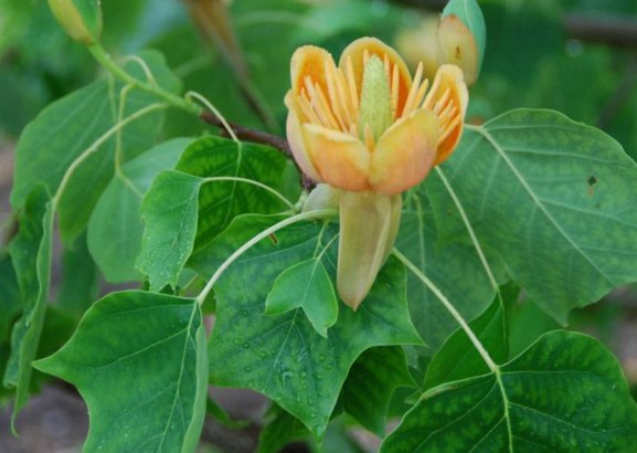Лириодендрон Heltorf - листопадное дерево с очередными крупными 2—6-лопастными листьями на длинных черешках, с небольшими прилистниками на молодых побегах. Цветки слабодушистые, тюльпаноподобные, на концах веточек, одиночные, крупные, с отогнутыми книзу чашелистиками и 6 прямостоящими широкоовальными лепестками венчика, тычинок много. Цветет сорт в мае — июне.