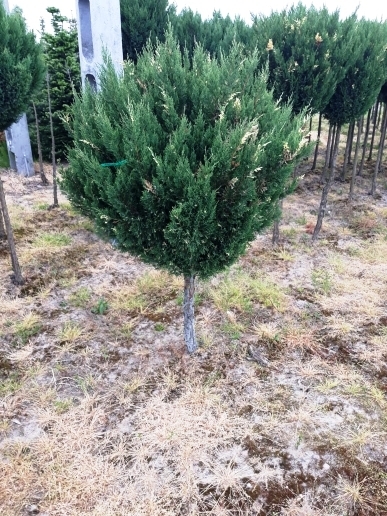 Медленно растущая карликовая форма можжевельника. Высота растения зависит от высоты прививки, диаметр кроны 1 м.