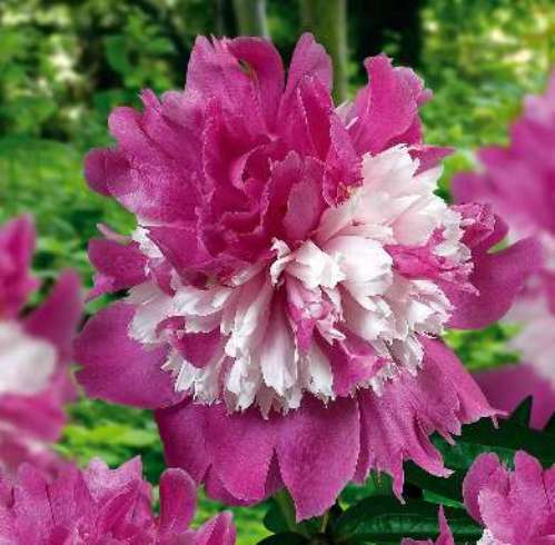 Саженцы пиона Celebrity уникальны, так как они обладают притягательным запахом и шикарными соцветиями. Этот сорт зацветает несколько позже, чем все остальные, образуя на устойчивых стеблях плотные и пышные бутоны. Махровые бархатистые лепестки пиона обладают насыщенным малиновым цветом с белыми вкраплениями в центре. Зеленые листья высоких стеблей имеют ажурную форму, ближе к осени они приобретают багряный оттенок. Высота растения достигает ста сантиметров, диаметр соцветий в среднем составляет пятнадцать сантиметров. Пионы Celebrity отлично приживаются в любой почве, они нетребовательны в уходе и морозостойки.