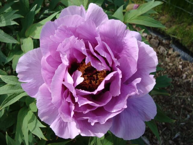 Древовидный пион Kamata Nishiki имеет сиреневые лепестки с прожилками белого. Очень крупные, полумахровые. Красивые цветы, очень контрастные. Взрослые растения имеют 4-5 футов высотой, 3-5 метров в ширину.