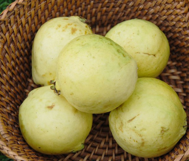 Psidium guajava White Indian - экзотическое плодовое дерево. Плоды малого и среднего размера, округлой формы, диаметром 6-8 см. Мякоть плотная, белого цвета, приятного вкуса. Плоды обладают отличным, бодрым ароматом.
