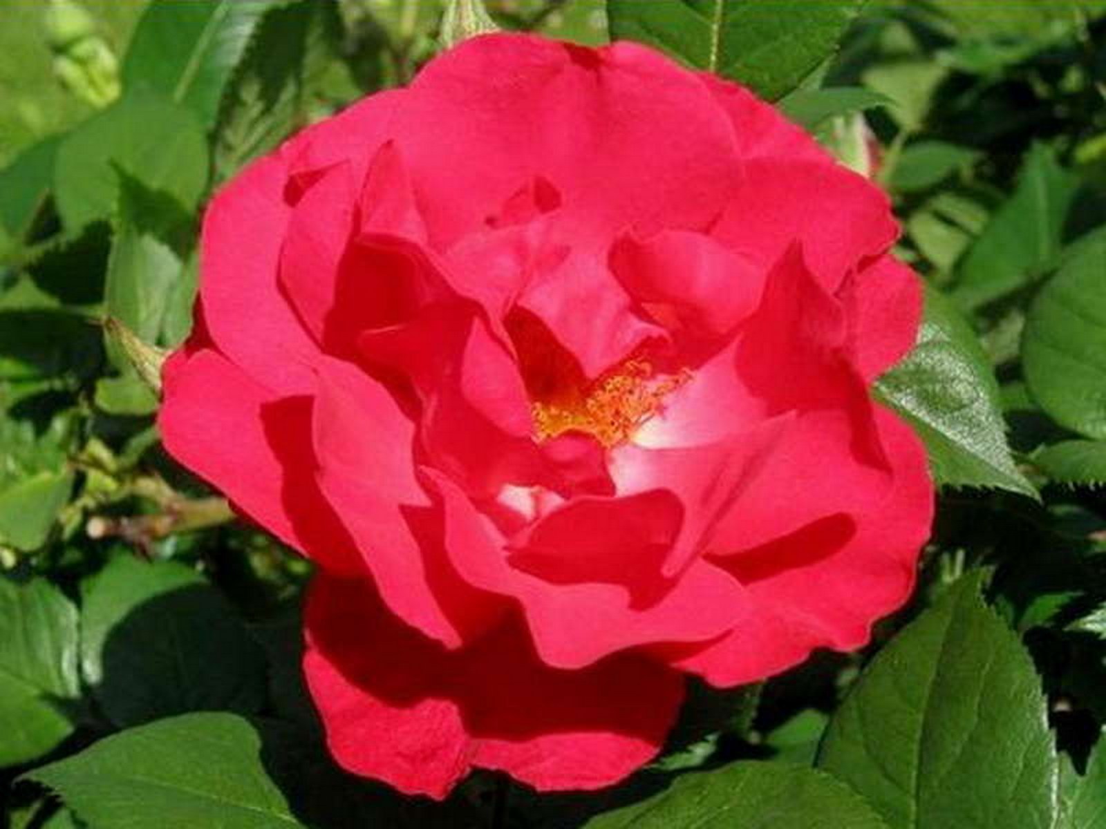 Роза Burghause - очень выносливый, устойчивый к заболеваниям, повторноцветущий, морозостойкий сорт. Цветки диаметром 6-8 см, светло-красные с белым центром, чашевидные, махровые (25 - 28 лепестков в одном цветке), обладают легким ароматом.Куст мощный, сильнорослый с прочными побегами, высотой до 2 м, побеги покрыты зеленой, матовой листвой, полностью устойчивой к болезням. Цветение очень обильное, продолжительное, повторное, цветки собраны в соцветия, на одном цветоносе в период массового цветения насчитывается 5 - 10 цветков.