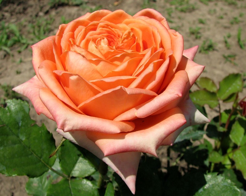 Роза Eldorado - золотисто-желтые цветки с лососево-оранжевыми тенями и бликами темно-розовых оттенков, густо-махровые (45-50 лепестков). Классический бокал в полуроспуске и свободная форма с красивой укладкой лепестков в полном роспуске. Диаметр цветка 10 см. На побегах главным образом одиночные. Высота растения 80 см. Куст очень компактный, с глянцевой листвой.