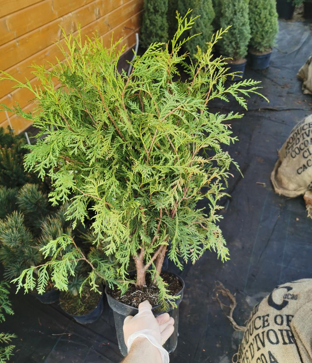 Туя западная Little Champion - компактный хвойный кустарник с густой округлой кроной, достигает в высоту до 1,5 м и 1 м в диаметре. В 10-летнем возрасте размер растения 0,5 м в диаметре. Крона рыхлая, ветви прямые, цвет листвы во время вегетационного периода зеленый, к зиме становится бронзовым или коричневым. Медленно растущий вид: ежегодный прирост 9 см. Светло-зеленая хвоя темнеет до буро-коричневой в зимний период, чешуевидная, плотная. Шишки мелкие коричневые. Сорт используется в одиночных и групповых посадках, альпинариях, его часто высаживают в горшки или контейнеры на террасах, вдоль садовых дорожек.