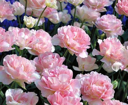 Тюльпан Angelica - очень изящный и нежный цветок, относится к поздним сортам. Цветет в мае. Высота растения 35-50 см. Цветок чашевидный, бело-розовый, диаметром 9 см, состоит из большого количества лепестков, образуюших бутон, высотой 6 см. Диаметр луковицы около 4 см.