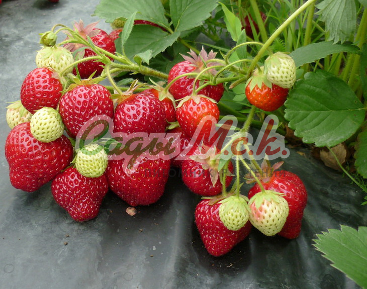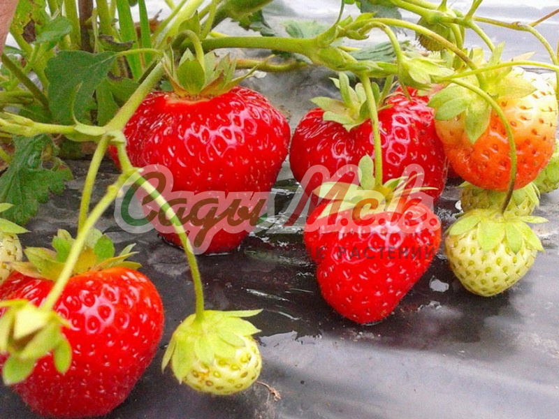 Саженцы земляники садовой Гирлянда принадлежат к ремонтантным сортам. Кустарник рослый, устойчивый к заболеваниям, отличается большой продуктивностью, формирует много цветоносов и усов, плодоношение осуществляется на образующихся розетка. Плод крупный, красивой формы, красный с плотной мякотью, обладающей удивительным ароматом земляники. Сорт земляники садовой Гирлянда плодоносит весь сезон, можно выращивать традиционным способом на грядках, либо в вертикальной культуре. Достоинства: зимостойкость, декоративность, десертный вкус и товарный вид ягод, транспортабельность.